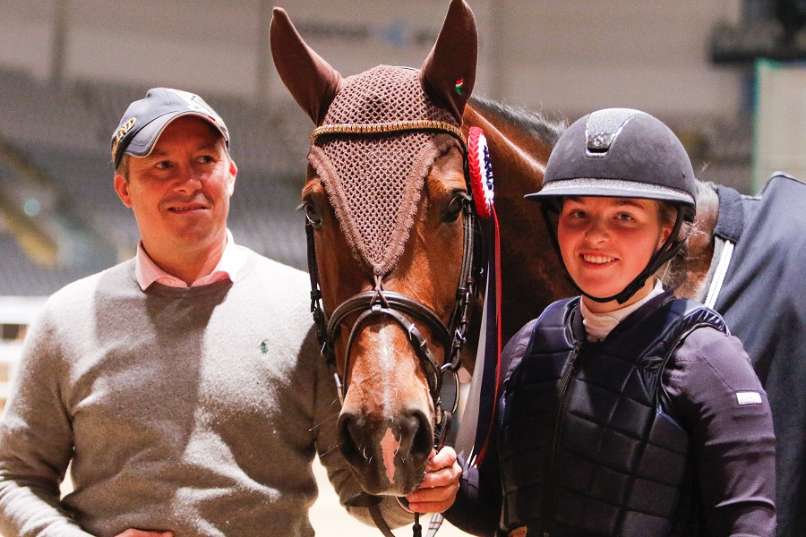 Stina, som rir for Trøndelag Hestesportsklubb, takker treneren og mamma og pappa for at dagens resultatliste ble som den ble. – De stiller alltid opp for meg! Og så har jeg en veldig fin hest, vi er en skikkelig match.